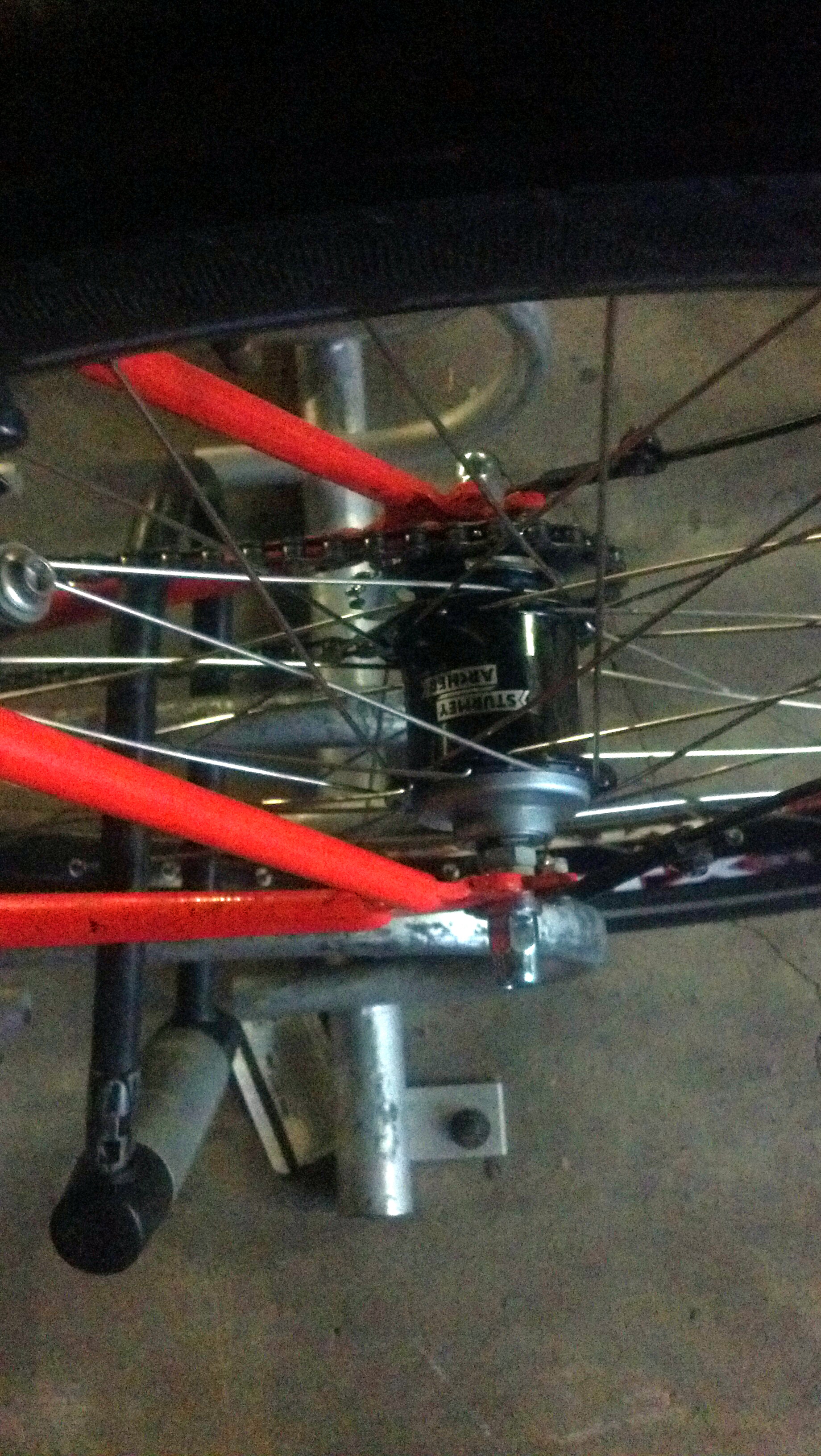 In any case, by mid-afternoon (and I’d started around noon), I had a wheel. We mounted it up and I got give my new Sturmey-Archer S2 Duomatic. I’ll have more on that later, but suffice to say I’m pleased with my new wheel building skills. I may not build a lot of wheels in the future, but I no longer think it’s some dark magic.