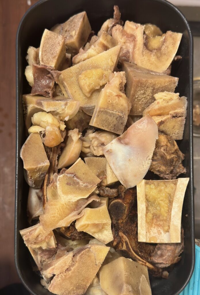 And finally, all the bones are layed out in my Ninja air crisper ready for a twenty-five roast browning before it’s time for the pressure cooker.