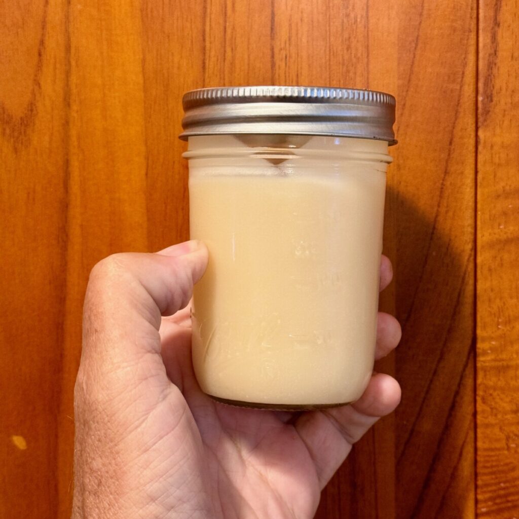 This jar will go in the fridge with a couple of others. I have a lot of tallow from my recent cooks. I may give this one away as I really have more than I need.