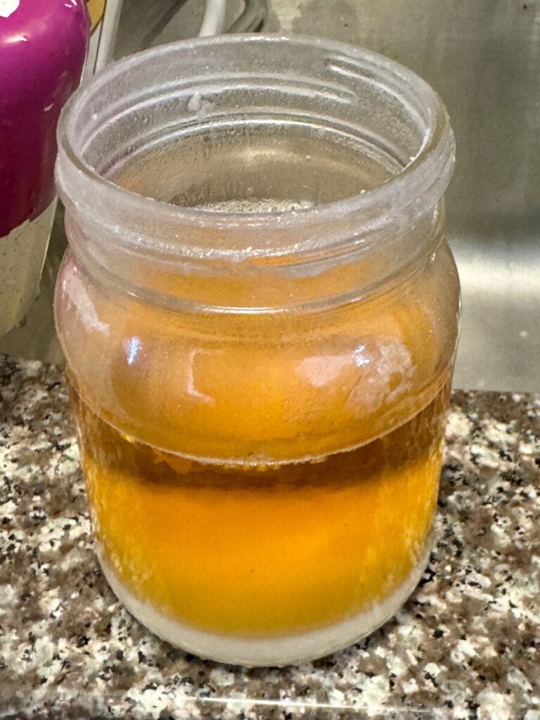 Yes, I was making more bone broth today, but the real score as a nice jar of tallow. This comes from the roasting stage of the cook. Again, first I blanch the bones in boiling water for few minutes to remove impurities like blood, bits of hair, and so on. Next comes the roasting. I use my air fryer on roast for about 25 minutes at 425 F. That generally gets them nice and golden brown. I also get a nice haul of pretty clean beef tallow. You’d think this makes the bone broth devoid of oils, but it isn’t so. There’s always enough for a good amount in the broth itself.