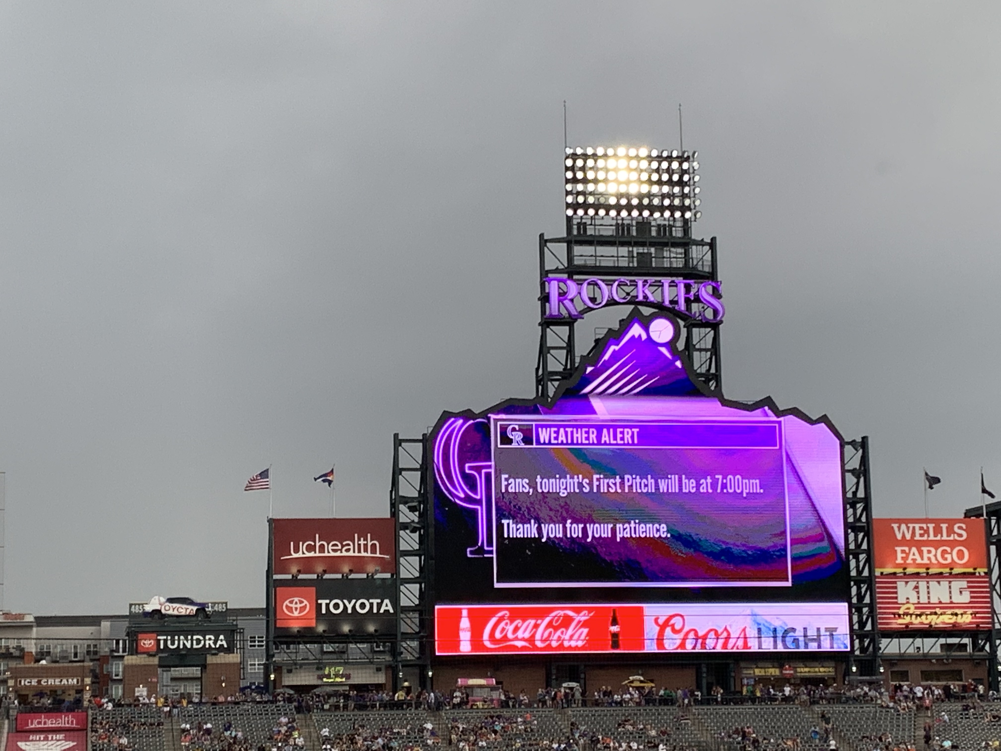 A storm was moving in, which seems pretty typical for a summer night in Denver, so the game was delayed by twenty minutes.