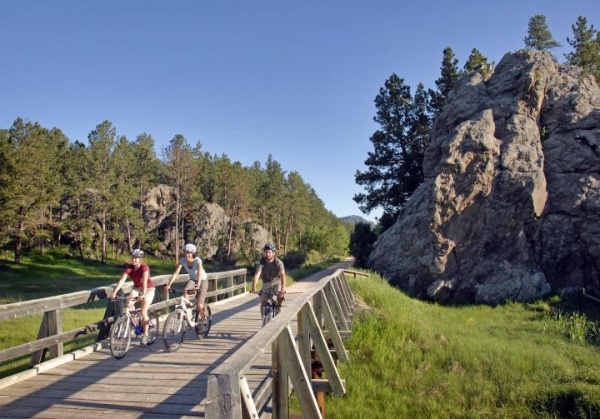 Then the journey really begins. On Tuesday Erich and I will be driving to Hill City, South Dakato in the Black Hills near Mt. Rushmore. On Wednesday we have plans to spend the day riding parts of the Mickelson Trail. I don’t know much. about it, but it looks lovely as this shot from the SD Tourist Bureau attests.