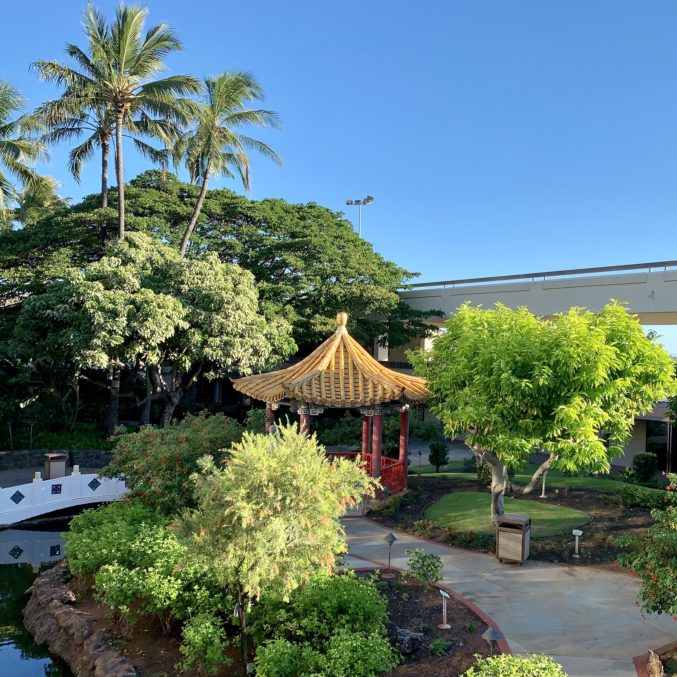 It’s a lovely afternoon in Honolulu and I’m flying off. Go figure. Here’s a shot of the garden area at Honolulu International.