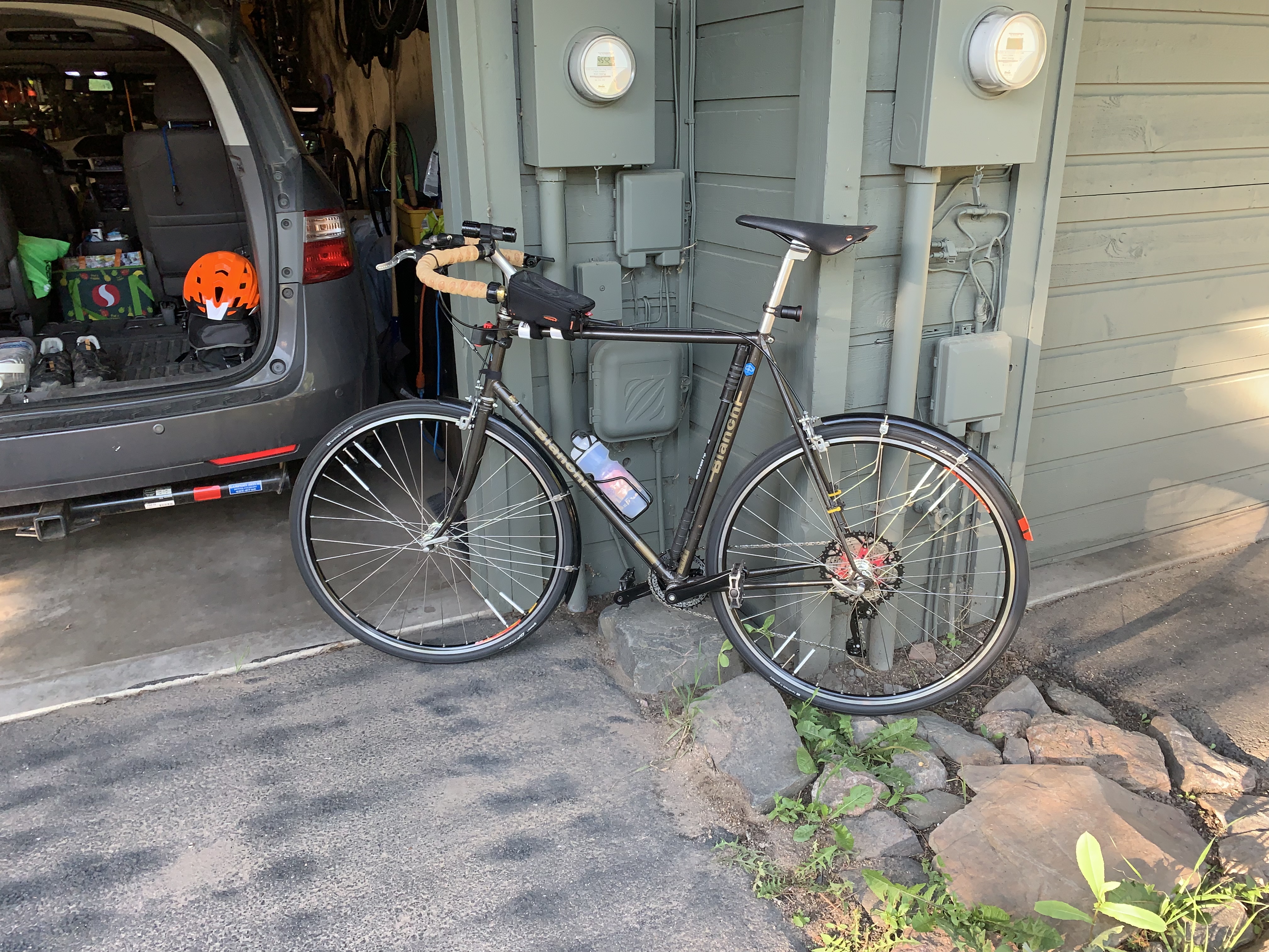 She’s set up for hills with a wide 1×10 gearing system. We’ll see how well she does in Iowa as her work isn’t done when that’s finished. I’ll also be riding her from Brookings, Oregon to San Francisco a bit later this year.