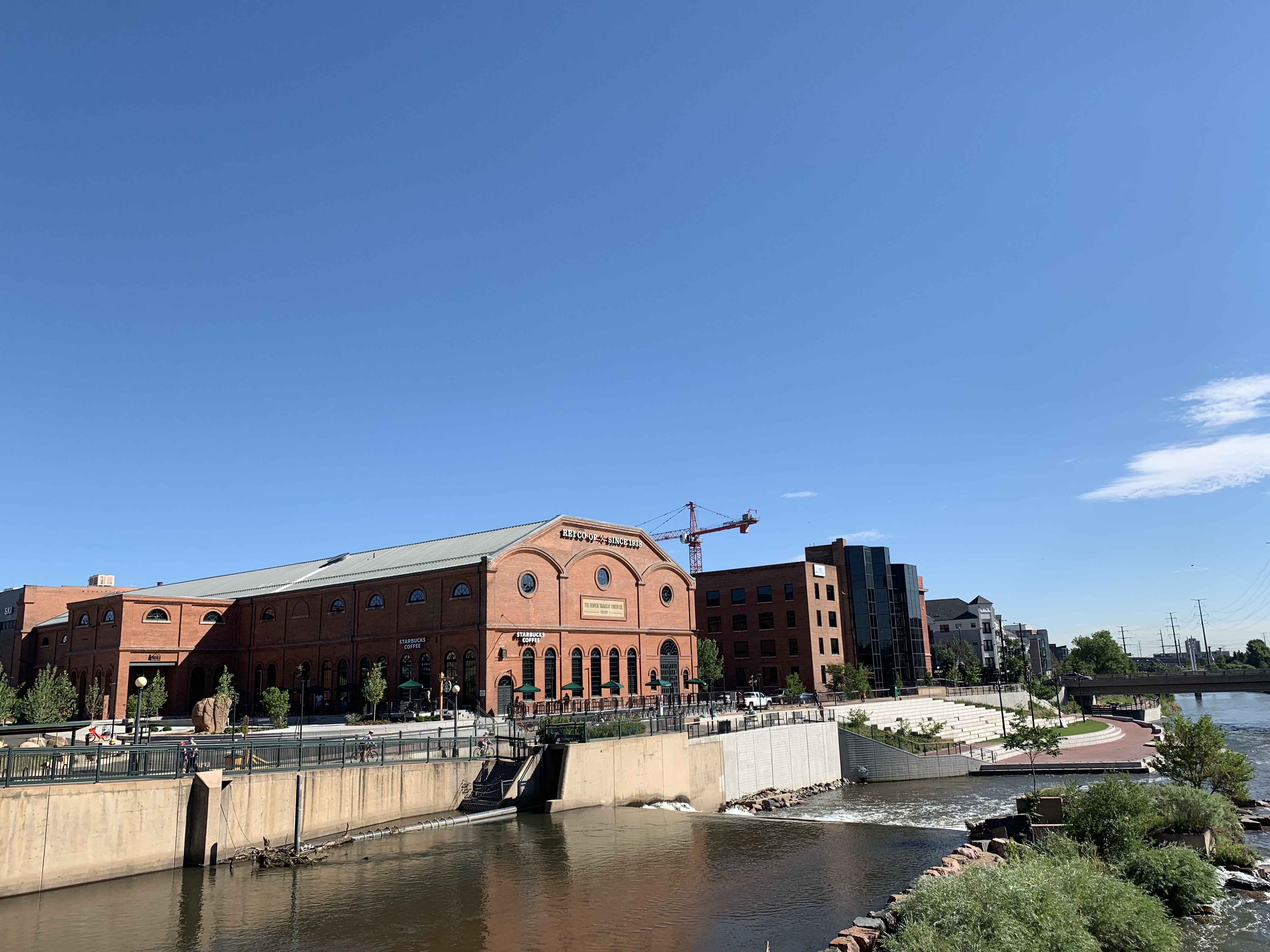After checking in, and amazingly my room was ready at noon when I got here, I headed out to REI to replace my small duffel bag which started coming apart on the final flight, LAX to DEN. I’m not upset, it’d had lasted over a decade and had seen many, many trips. REI is close enough to walk to and it’s a lovely walk through the heart of downtown Denver. This is a happening place. And, of course, there’s always the river for fun.