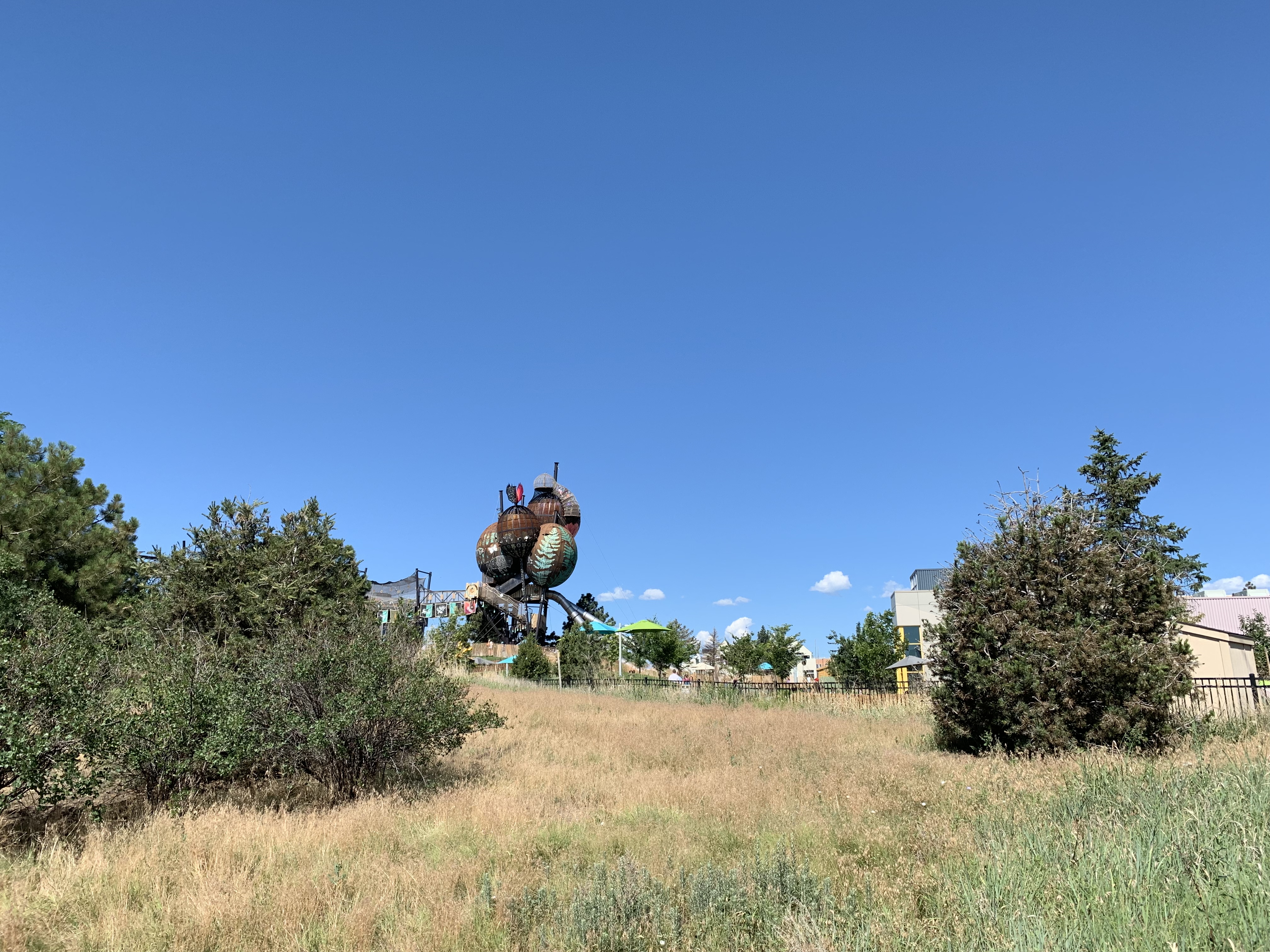 On the way back we went by a park for kids with the oddest climbing structure I’ve seen. Erich calls it an insect…and it looks a bit that way.
