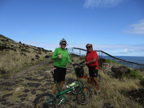 This was the second time I’ve been able to do it and once again it was a blast. The ride goes from Wahiawa around Kaena Point, then back to Honolulu. It’s a mixed ride; road, trail, hiking/portage. Here I am with another Bike Friday rider out on the trail portion near the point!